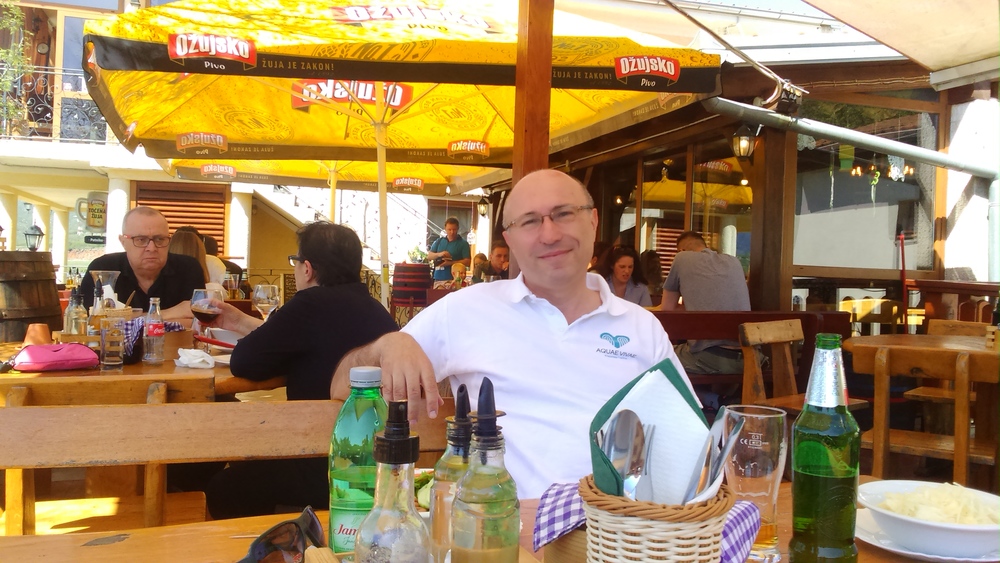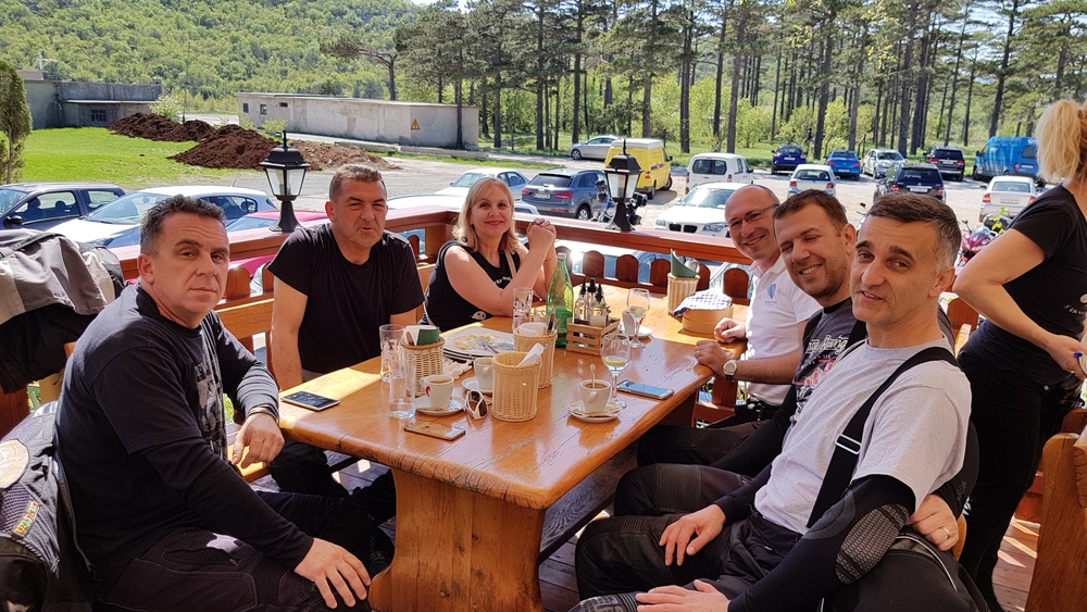 Društvo Laganinijevaca se lagano sprema za polazak dok nas dvoje ostajemo u očekivanju gastronomskog slavlja. Dok čekamo, vrijeme kratimo opuštenoj u ćakuli, a ja i u bezalkoholnom pivu. Alkohol i dva kotača ne idu zajedno.