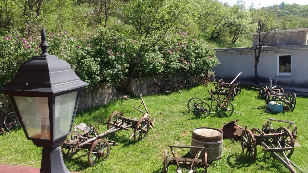 Pokraj terase je pravi mali muzej ruralnih prijevoznih sredstava i ratarskih alatki među kojima se našlo i nekoliko prastarih bicikala.